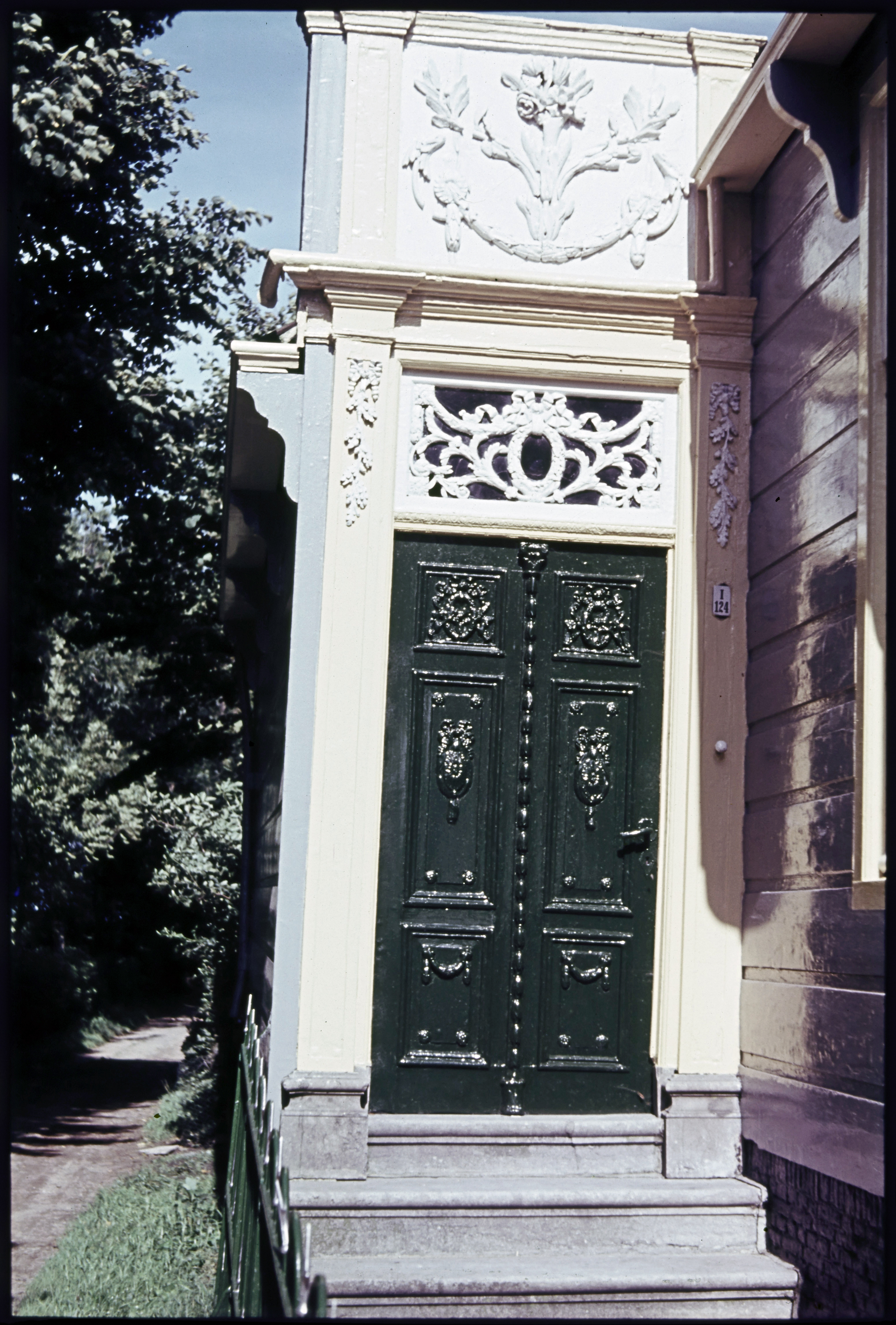 Woning met bewerkte deur en bovenlicht