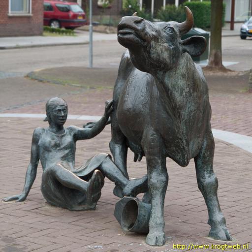 Koe met vallend melkmeisje