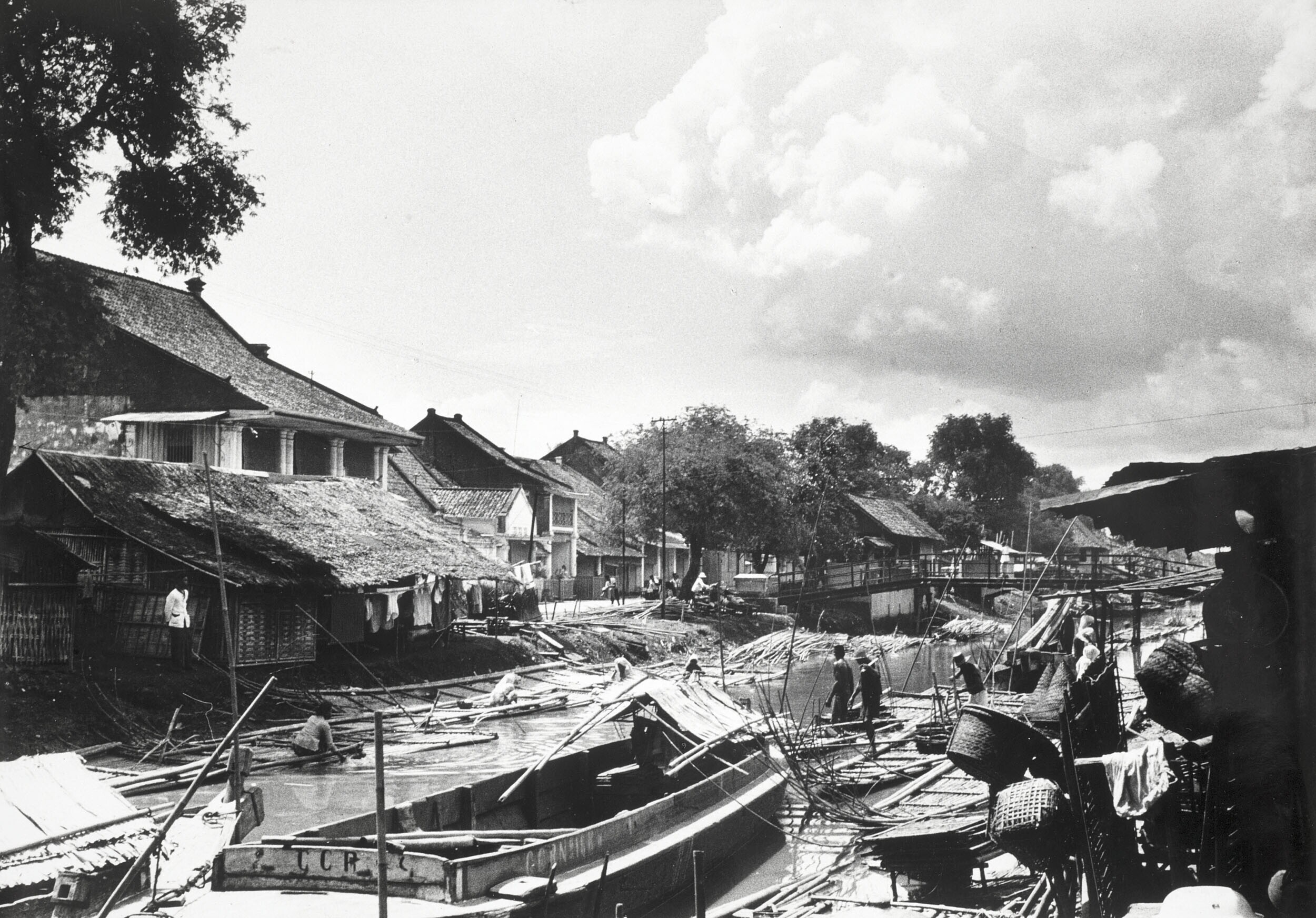 Vaarwater waarin boten met huizen erlangs