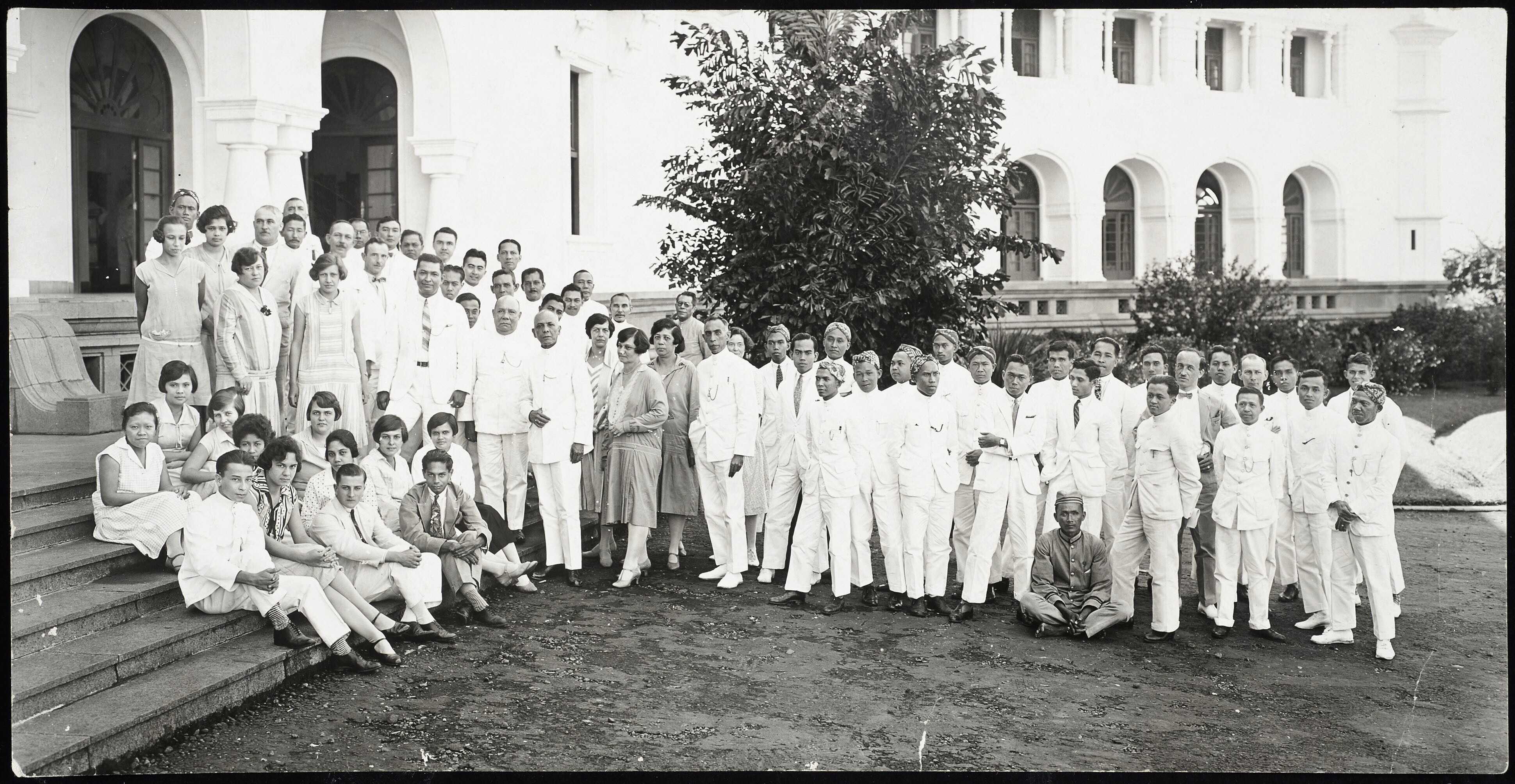 Groepsportret tijdens carnaval in Soerabaja