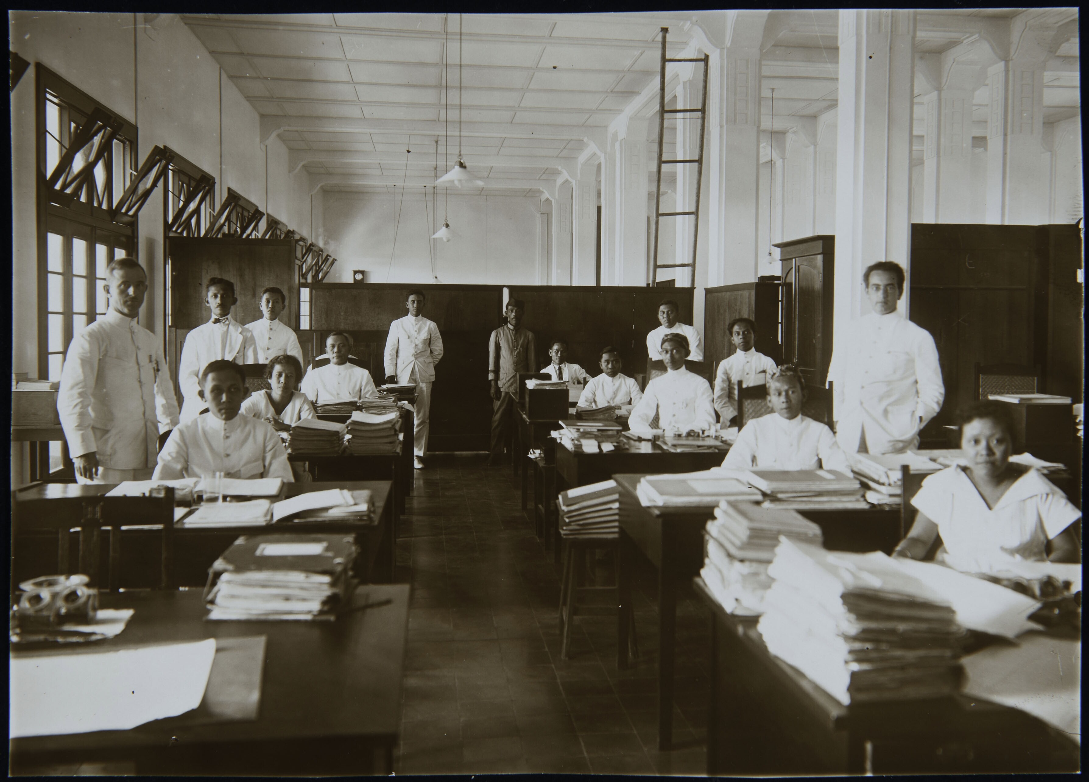 Groepsfoto van het personeel van de PTT, 11e persoon...
