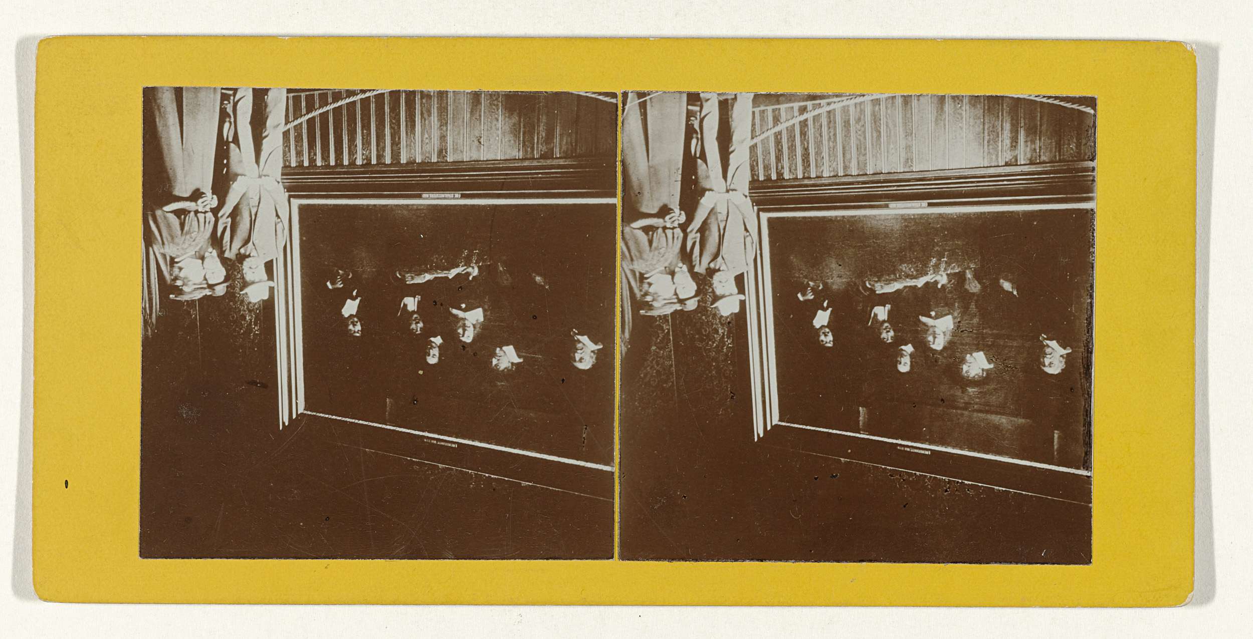 Bezoekers bekijken de Staalmeesters in de Nachtwacht...