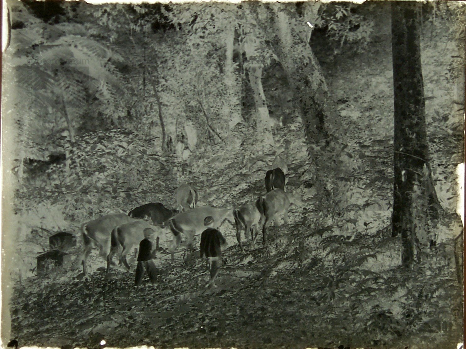 Waterbuffel in rijstveld, Bali, Indonesië (1912-1914)