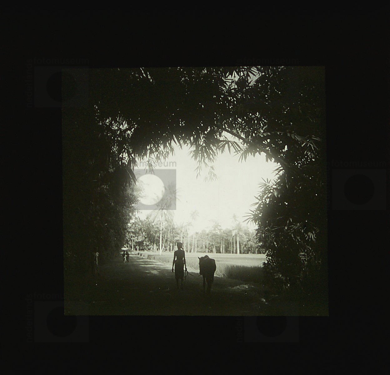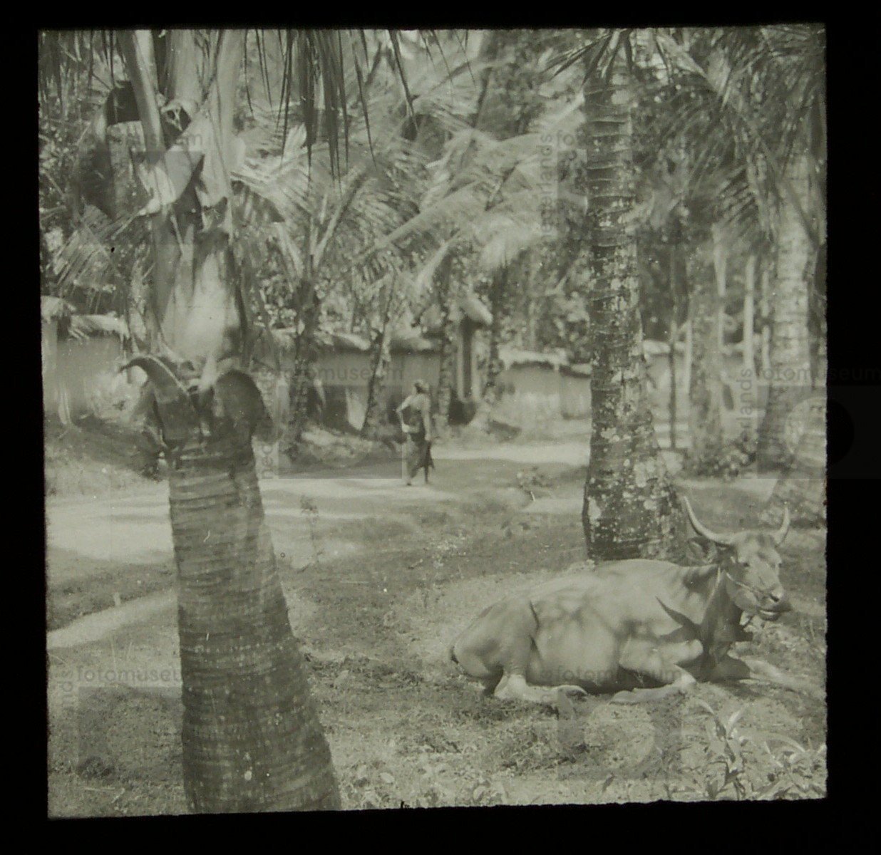 Waterbuffel bij een landweg, Bali, Indonesië (1912-1...