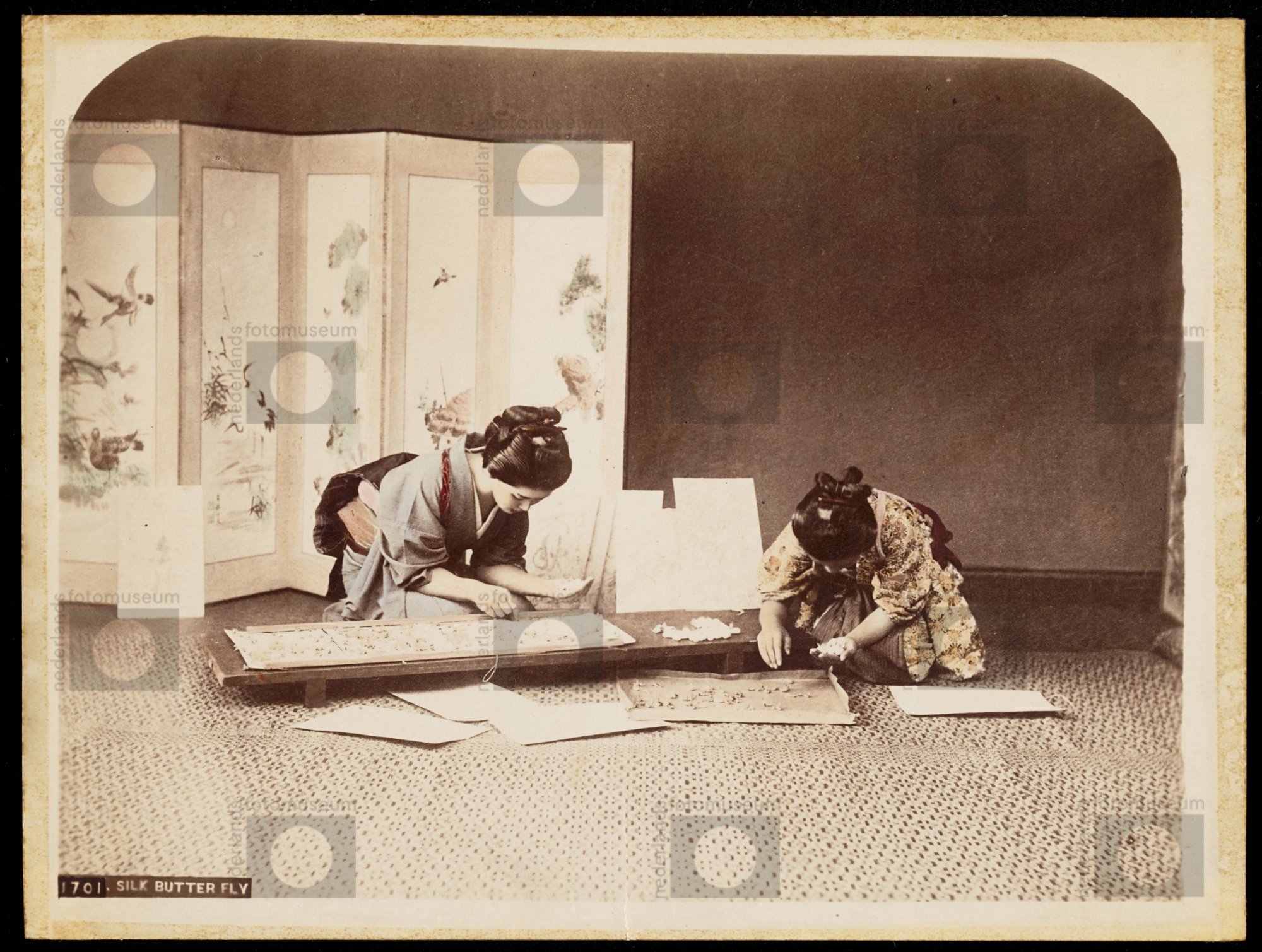 Vrouwen selecteren zijdecocons, Japan (1863-1923)