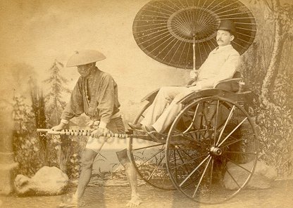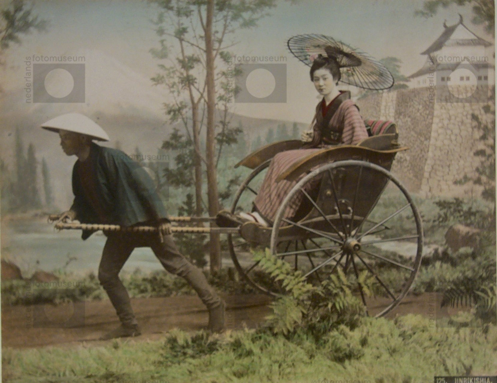 Studiofoto van Europeaan in een draagstoel voortgetr...