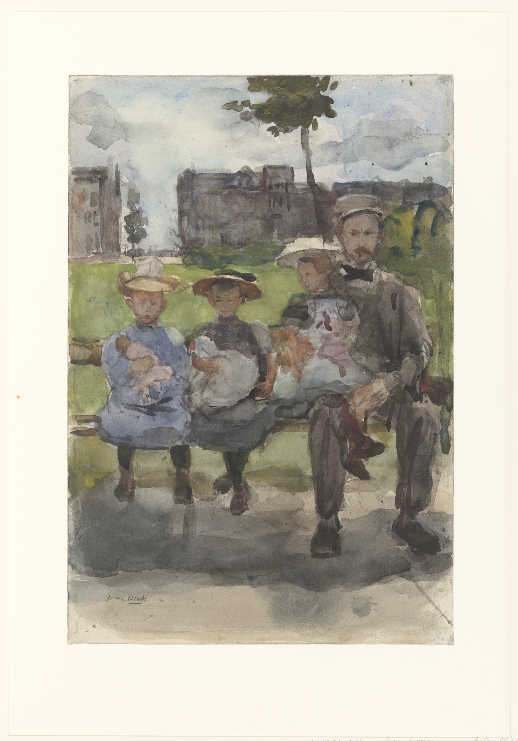 A Man with Three Girls on a Bench in the Oosterpark ...