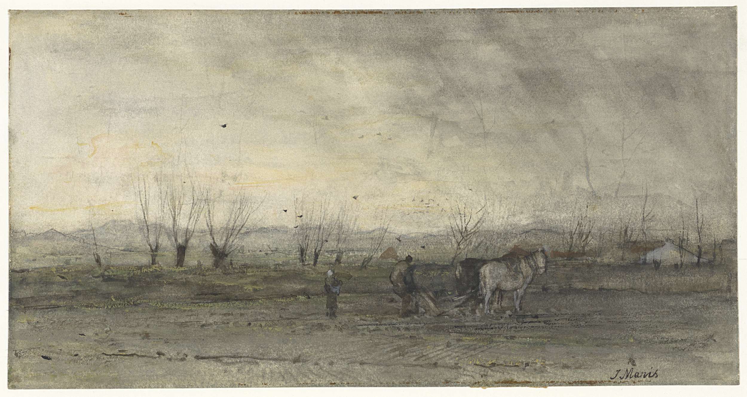 Landschap met ploegende boer