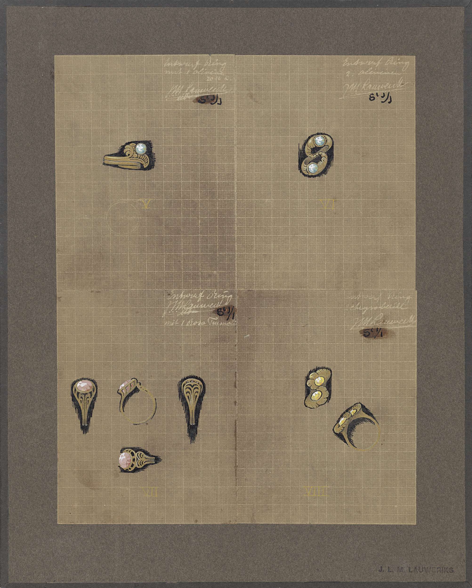 Ingekleurde blauwdrukken van ringontwerpen