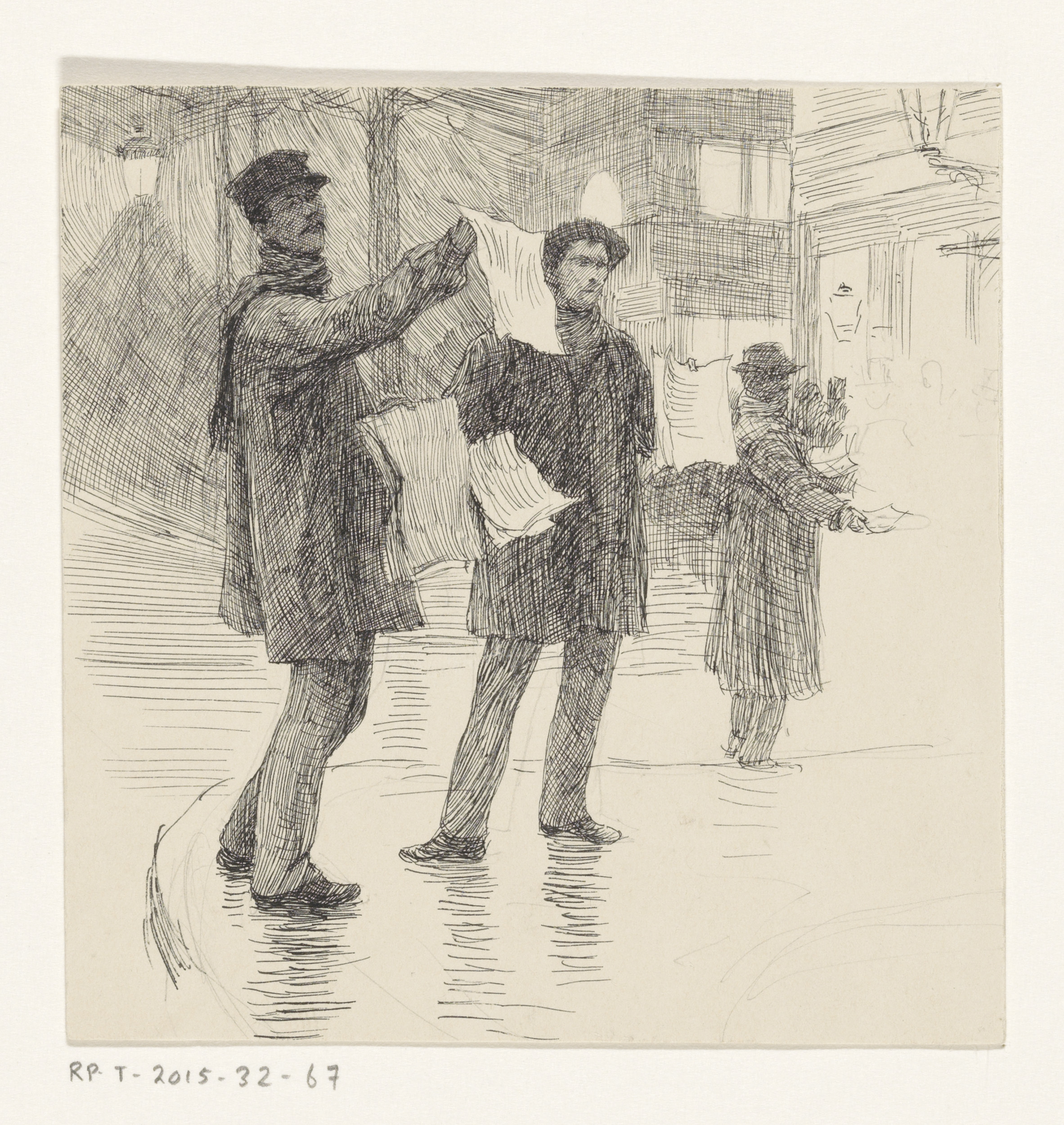 Drie krantenverkopers