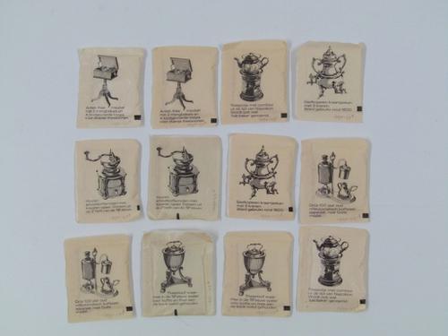Twee series van zes Douwe Egberts suikerzakjes met v...