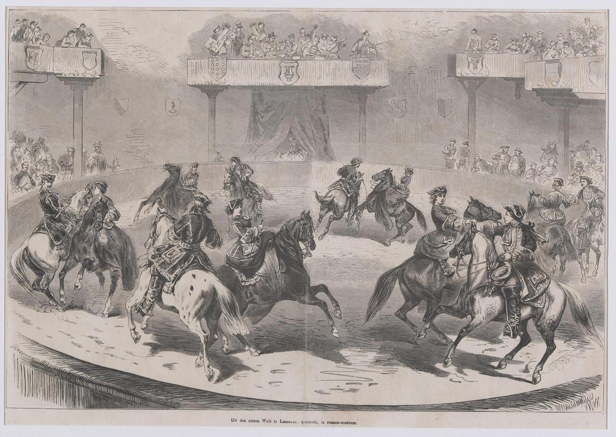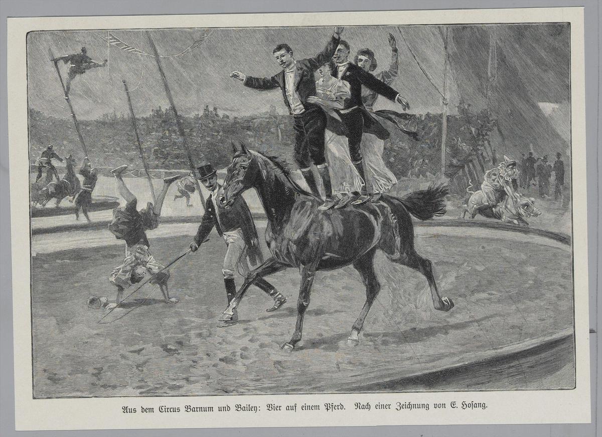 Ein neues Reitersportspiel mit dem Riesenball im Cir...