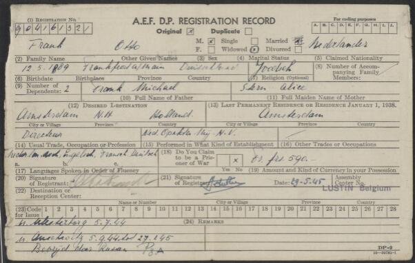 Allied Expeditionary Force D.P. Registration Record ...