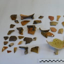 Fragmenten van witbakkend aardewerk.met glazuur en r...