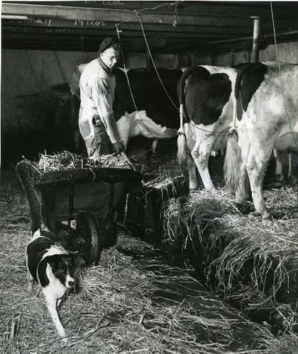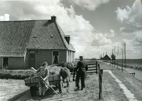 Foto in zwart-wit van het uitrijden van mest vanuit ...