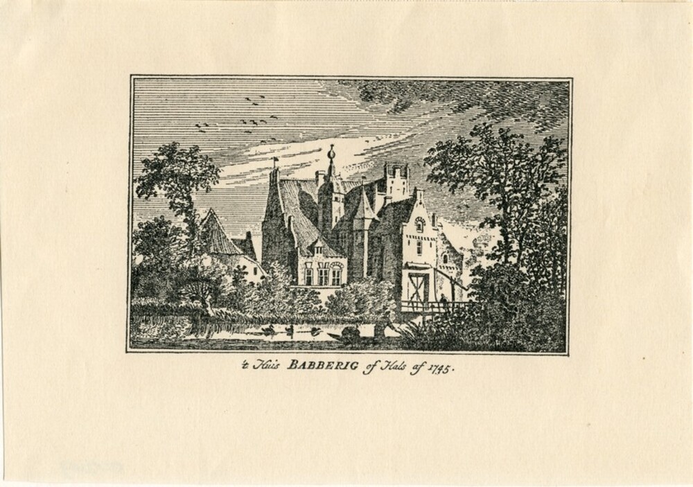 Gravure met afbeelding van Huis Babberich op papier ...