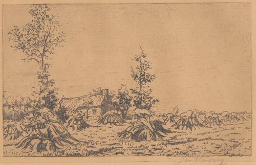 Korenschoven met huisje op de Zuiderheide