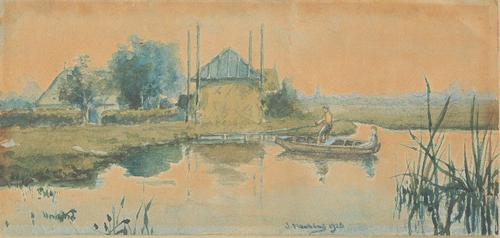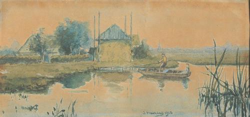 Aquarel van de Noorderdwarsvaart te Drachten