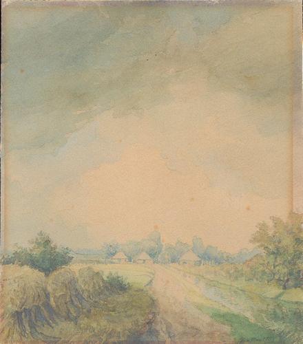 Aquarel van een huisje in de omgeving van de Torenst...