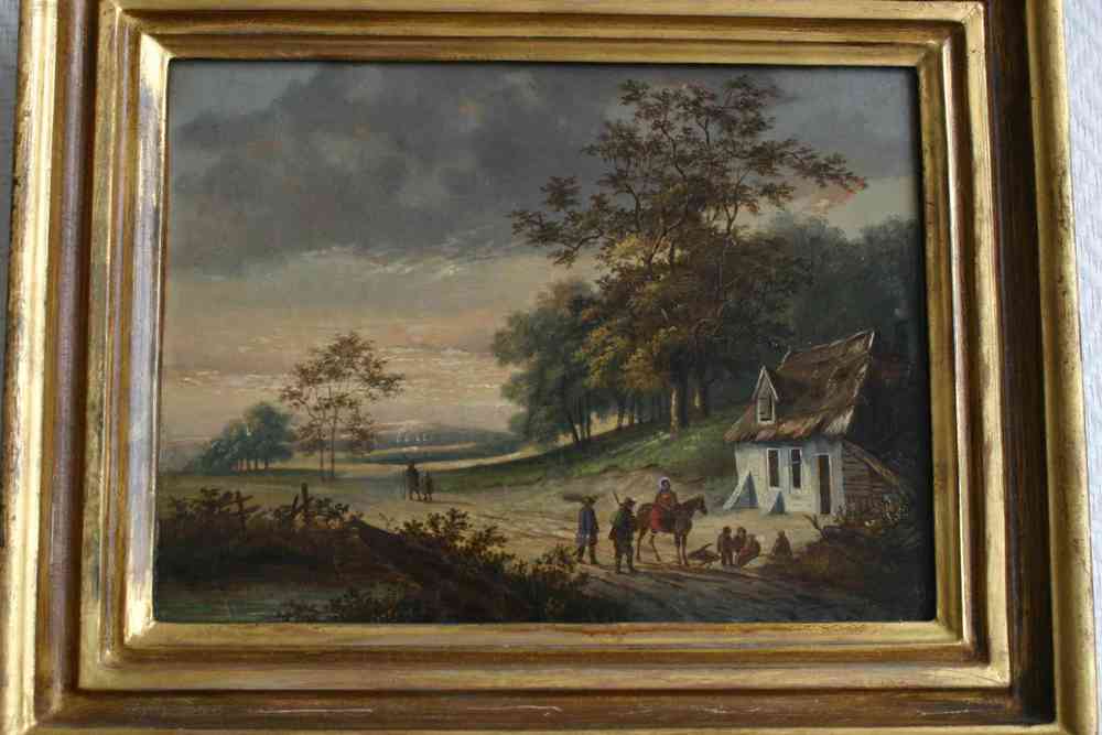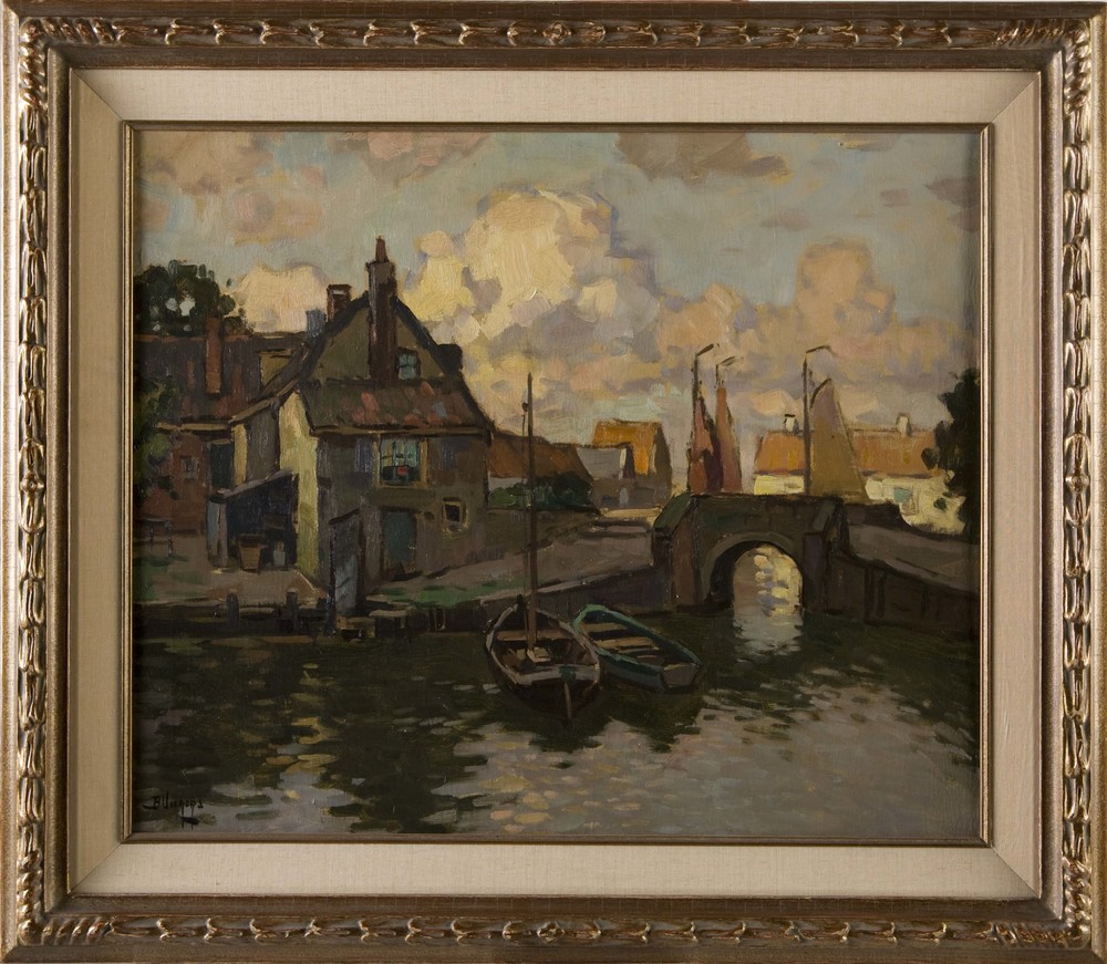 Aquarel op papier met voorstelling van stadsgezicht ...