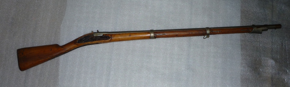 Geweer, zgn. vuursteenmusket, met bajonet, van hout,...