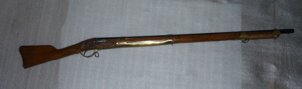 Geweer met bajonet, van hout, ijzer en koper, Nederl...