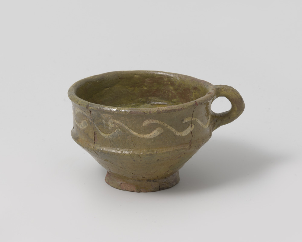 Wikkeldraadbeker van handgevormd aardewerk met versi...