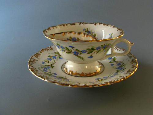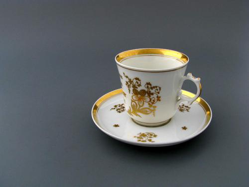Twee porseleinen kop en schotel. Verguld en met bloe...