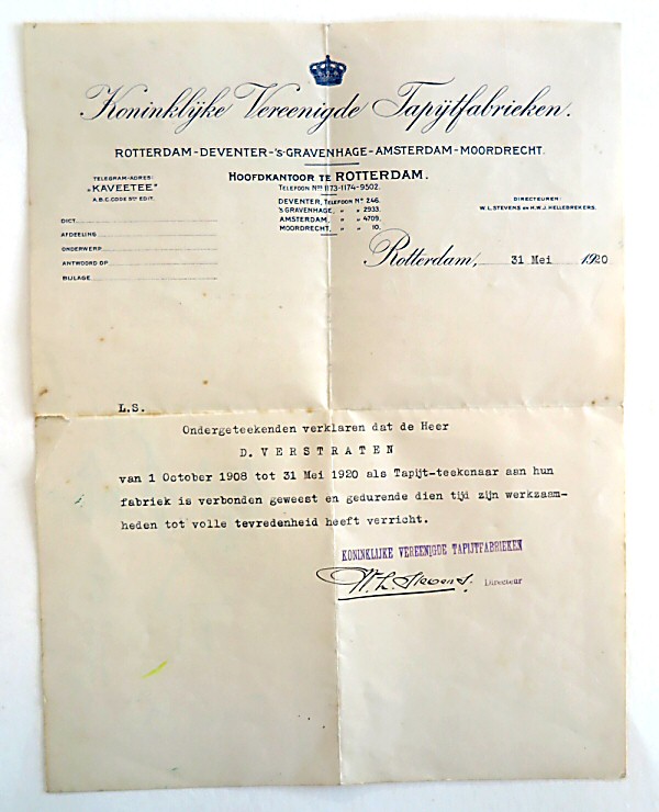 Hand-Tapijtknooperij "Kinheim"; Verstraten, D. (ontwerper)