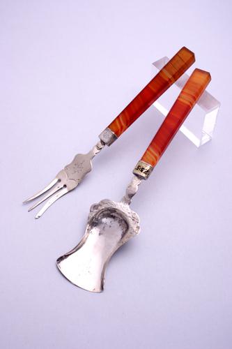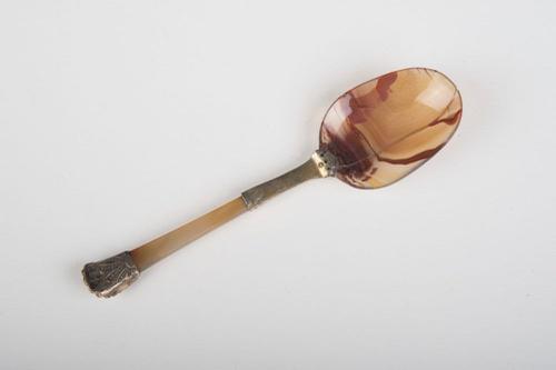 Lepel van agaat en montuur van agaat en verguld zilver