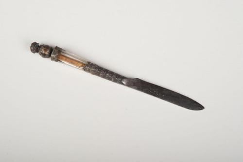 Klein mes met zilveren manchetmontuur en bloemdecora...