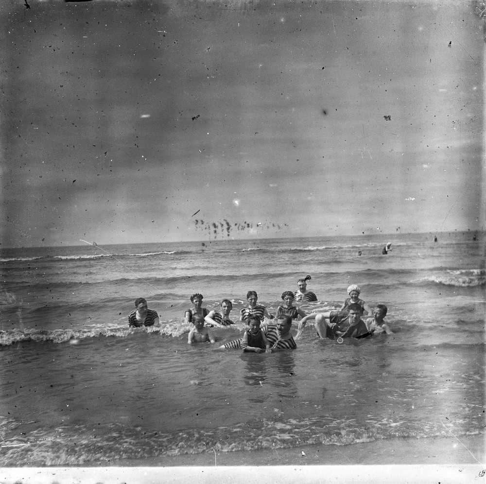 Portret van een gezelschap in zee