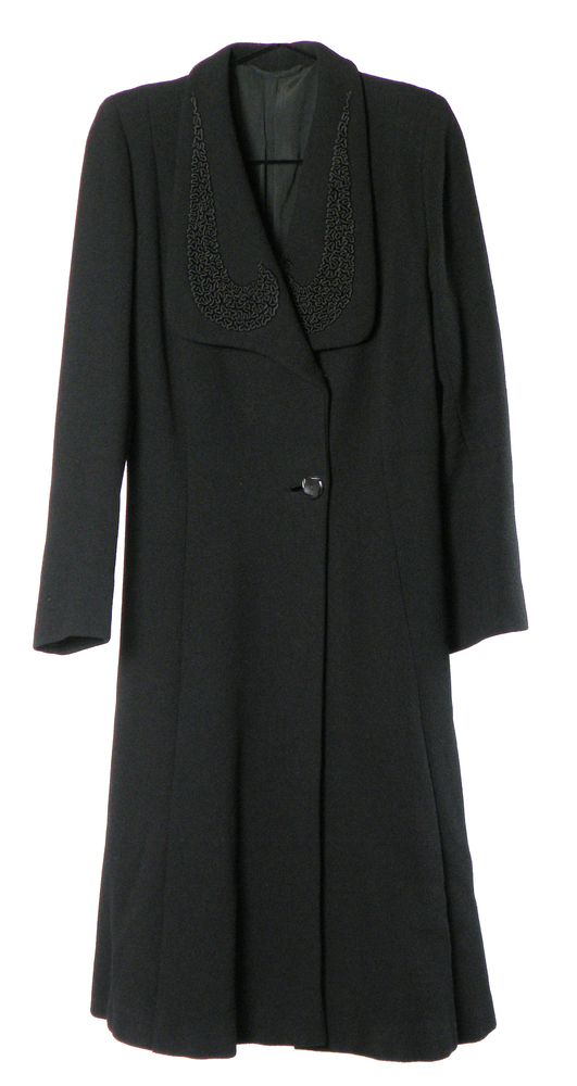 Lange, zwarte, wollen damesmantel