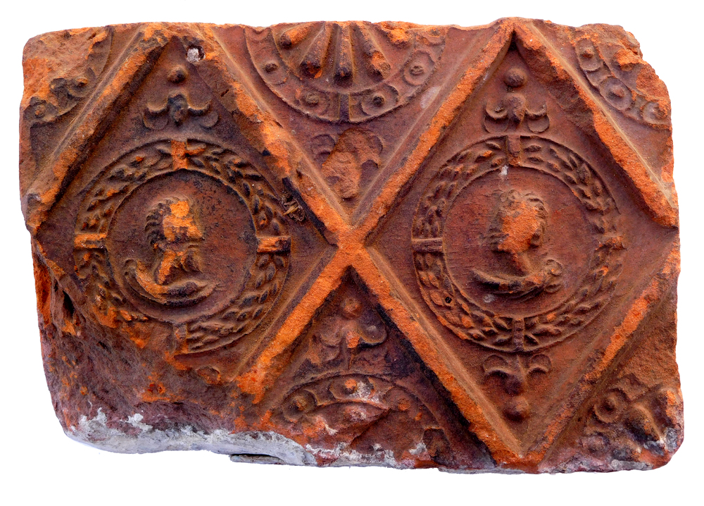 Haardsteen met daarop twee koppen in een doorlopend ...