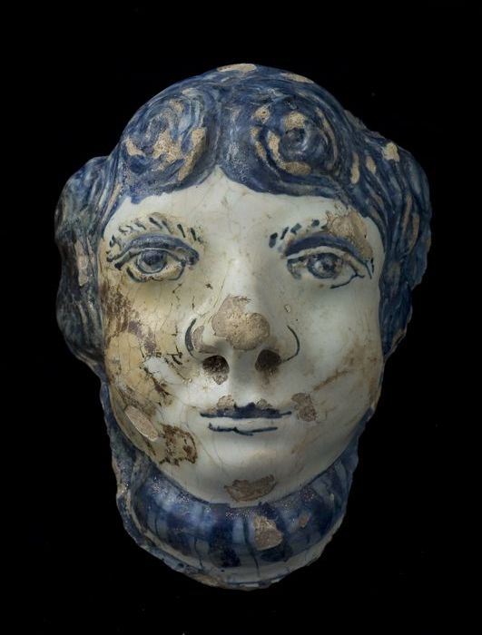 Fragment van enorme blauwe faience vaas, beschilderd...