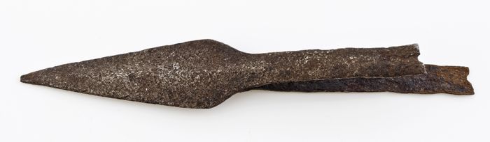 Kort ijzeren zwaard, grote koperen knop aan het gevest