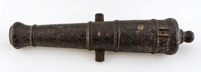 Kleine ijzeren kanonskogel, knobbel en gietnaad