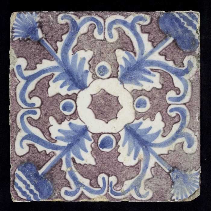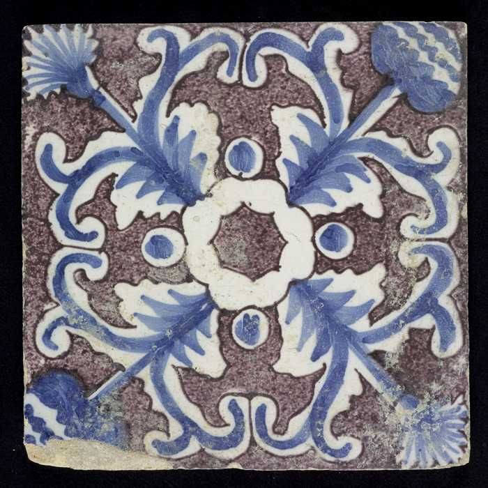 Ornamenttegel, paars gesprenkeld, zonder hoekmotief