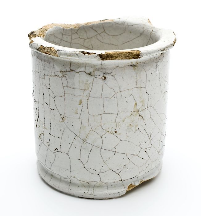Fragment faience zalfpot, cilindrisch, twee insnoeri...
