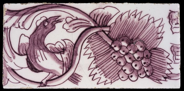 Rechthoekige paarse randtegel, omslingerd decor, oms...
