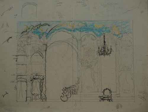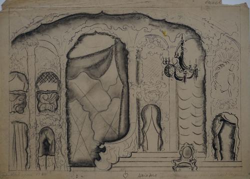 Operadecor met aantekeningen van de kunstenaar