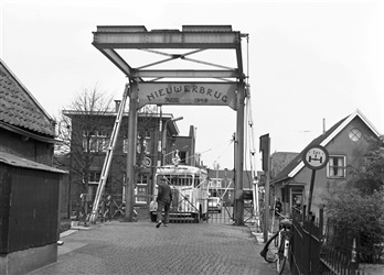 De bruggemeester opent het tolhek op de Tolbrug Nieu...