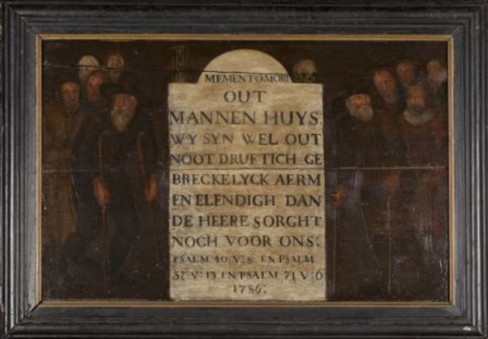 wandbord (memorietafel) van hout op olieverf. Enkele...