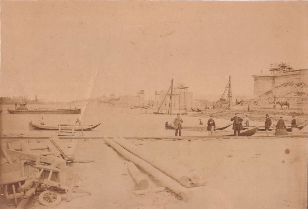 Bouw verkeers en spoorbrug bij Zaltbommel.
