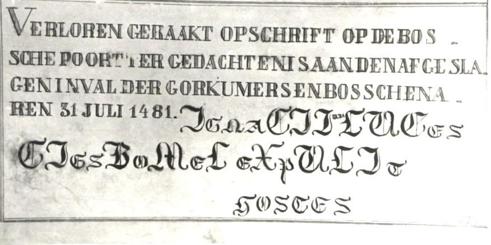 opschrift Bossche Poort, Zaltbommel. Nagedachtenis i...