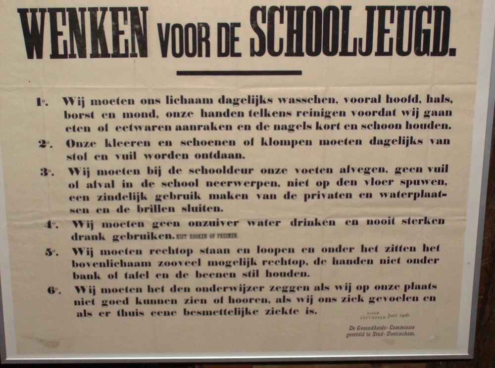 Informatiebord, getiteld 'Wenken voor de schooljeugd...