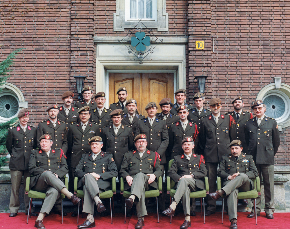 Groepsfoto staf 4 Divisie voor het stafgebouw op de ...