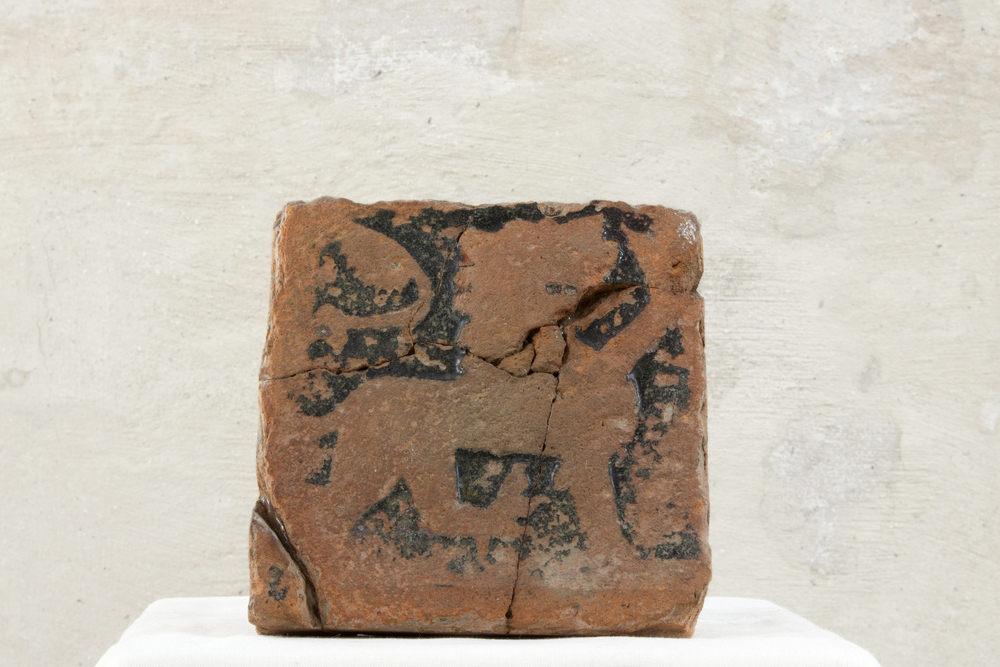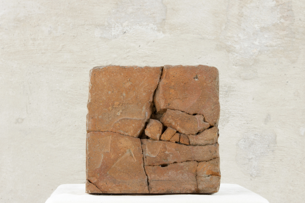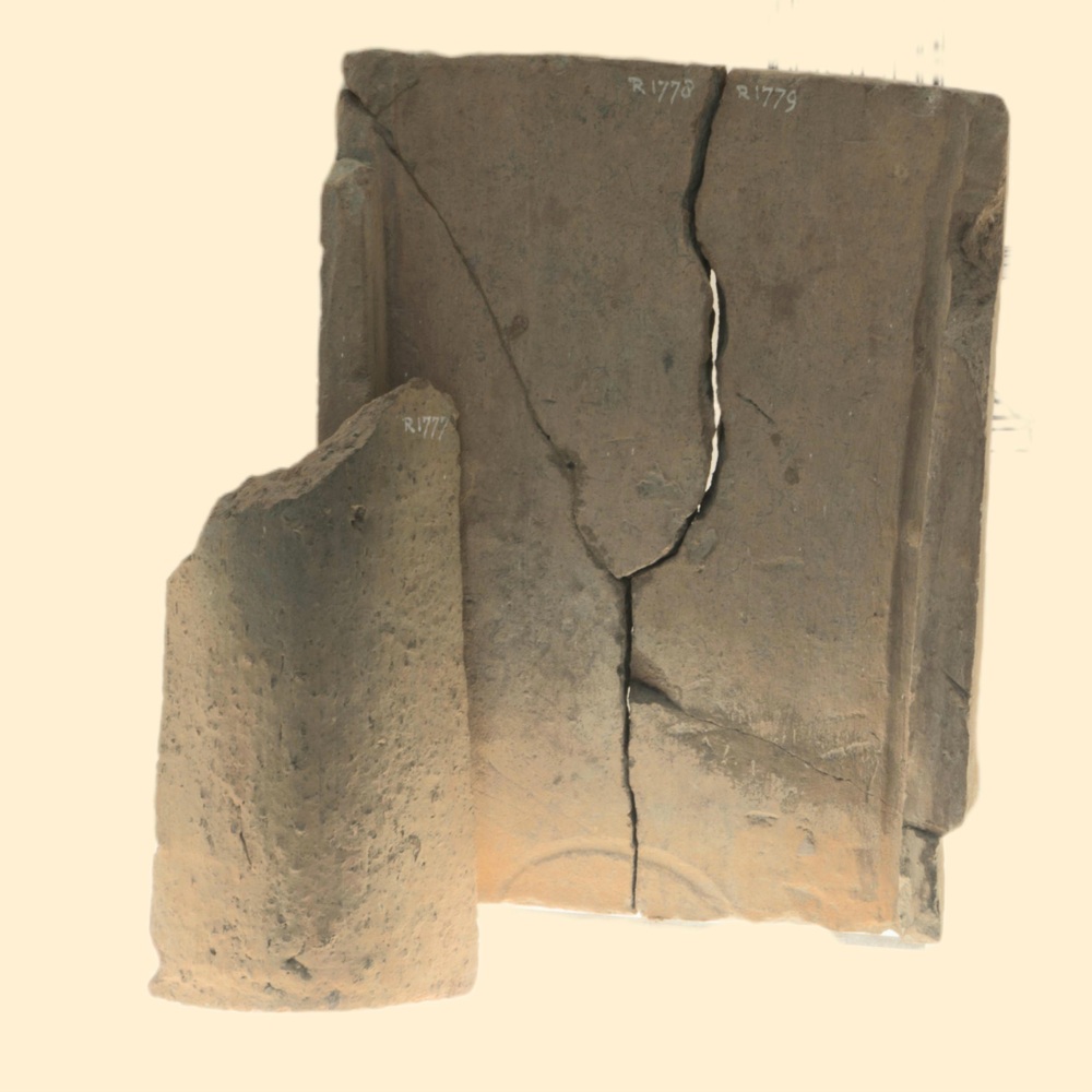 Dakpan van rode baksteen (tegula) met aan de linker ...