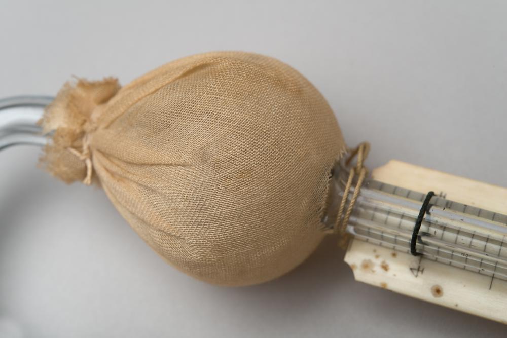 Hygrometer met kattesnaar en metalen schaal