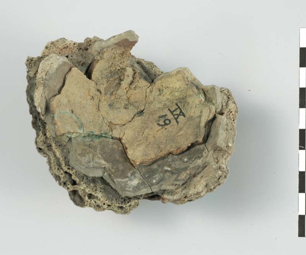 Fragment van een smeltkroes van aardewerk uit de Rom...